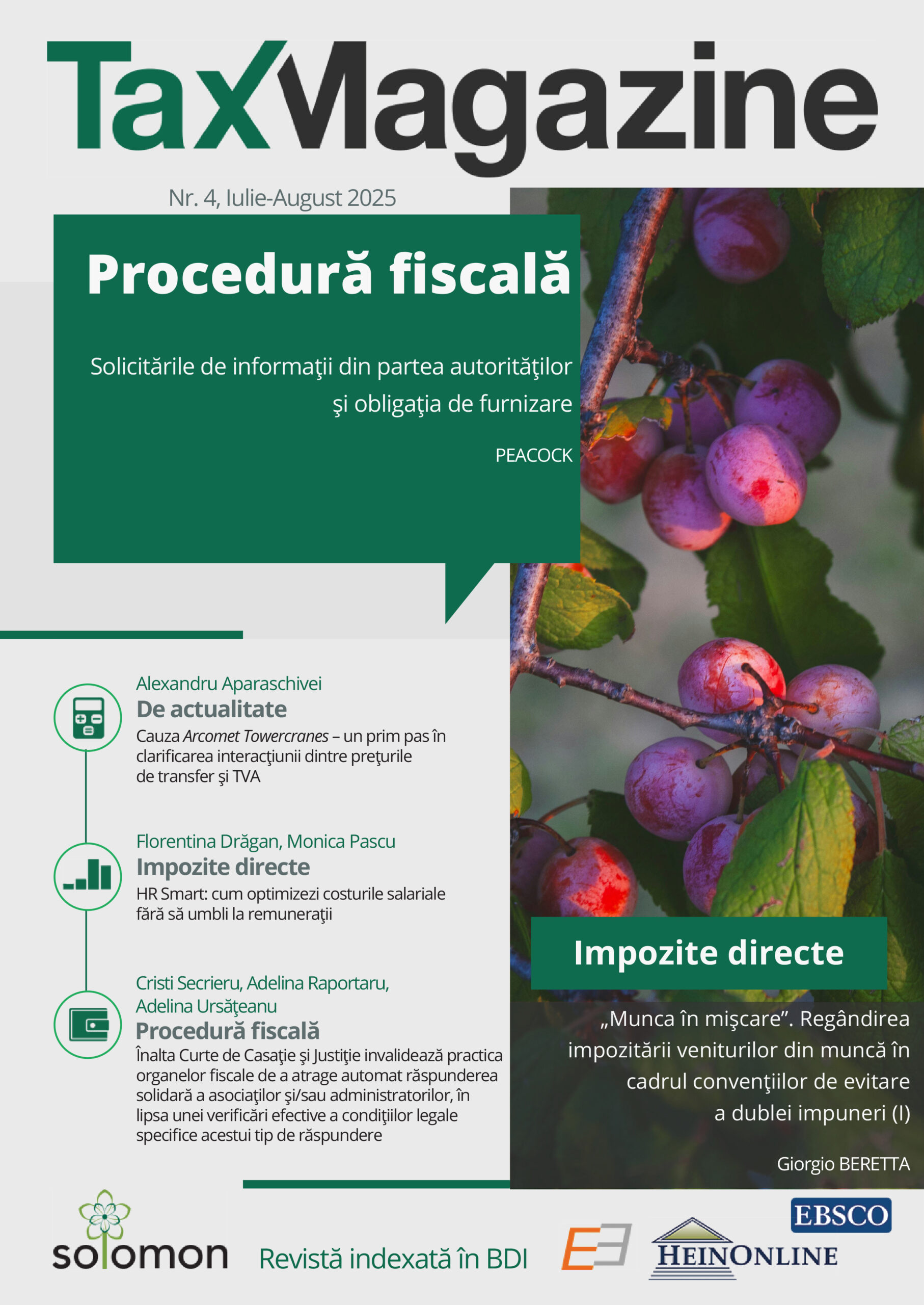 • publicată doar online, pe www.taxnews.ro, în secțiunea dedicată revistei