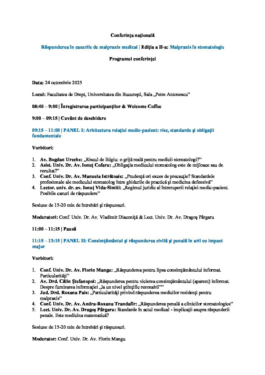 Programul conferinței malpraxis editura solomon